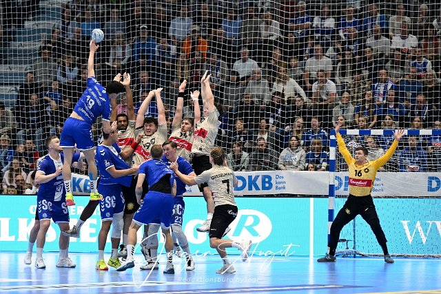 Giorgi Tskhovrebadze (VfL Gummersbach, #19) uebersoringt die Abwehrkette des Bergischen HC GER, VfL Gummersbach vs. Bergischer HC, Handball, DHB-Pokal, Achtelfinale, Spielzeit 2024-2025, 14.11.2024 Foto: Eibner-Pressefoto/Juergen Augst |