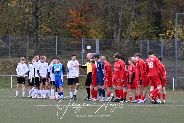 Fussball, Rheinlandliga C-Junioren, JSG Neitersen-Altenkirchen-Weyerbusch (rot) vs. SSV Heimbach-Weis (weiss/schwarz), 16.11.2024 |