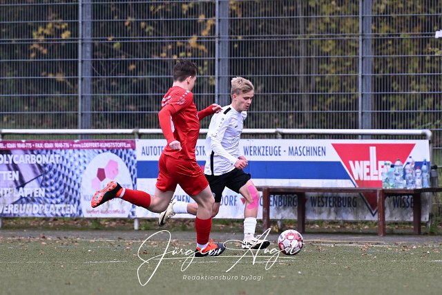 Fussball, Rheinlandliga C-Junioren, JSG Neitersen-Altenkirchen-Weyerbusch (rot) vs. SSV Heimbach-Weis (weiss/schwarz), 16.11.2024 |
