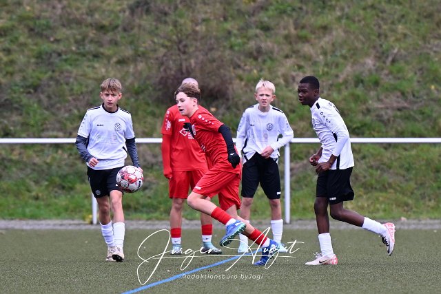 Fussball, Rheinlandliga C-Junioren, JSG Neitersen-Altenkirchen-Weyerbusch (rot) vs. SSV Heimbach-Weis (weiss/schwarz), 16.11.2024 |