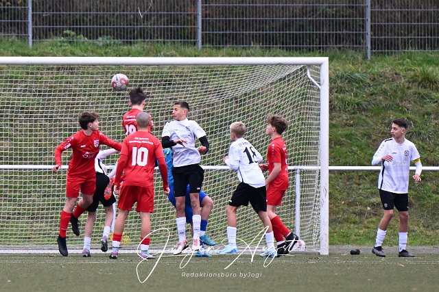 Fussball, Rheinlandliga C-Junioren, JSG Neitersen-Altenkirchen-Weyerbusch (rot) vs. SSV Heimbach-Weis (weiss/schwarz), 16.11.2024 |