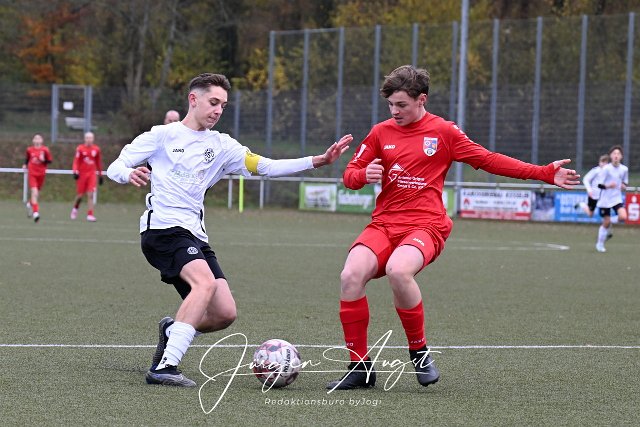 Fussball, Rheinlandliga C-Junioren, JSG Neitersen-Altenkirchen-Weyerbusch (rot) vs. SSV Heimbach-Weis (weiss/schwarz), 16.11.2024 |