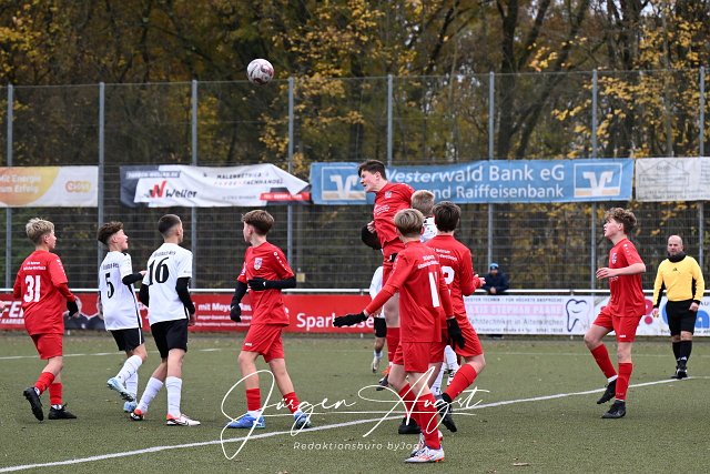 Fussball, Rheinlandliga C-Junioren, JSG Neitersen-Altenkirchen-Weyerbusch (rot) vs. SSV Heimbach-Weis (weiss/schwarz), 16.11.2024 |