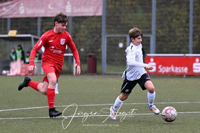 Fussball, Rheinlandliga C-Junioren, JSG Neitersen-Altenkirchen-Weyerbusch (rot) vs. SSV Heimbach-Weis (weiss/schwarz), 16.11.2024 |