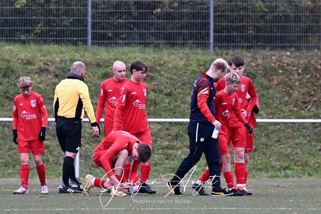 Fussball, Rheinlandliga C-Junioren, JSG Neitersen-Altenkirchen-Weyerbusch (rot) vs. SSV Heimbach-Weis (weiss/schwarz), 16.11.2024 |