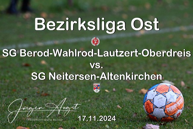 Fussball, Bezirksliga Ost, SG Berod-Wahlrod-Lautzert-Oberdreis (weiss-rot) vs. SG Neitersen-Altenkirchen (blau), 17.11.2024 |