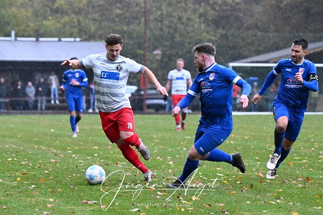 Fussball, Bezirksliga Ost, SG Berod-Wahlrod-Lautzert-Oberdreis (weiss-rot) vs. SG Neitersen-Altenkirchen (blau), 17.11.2024 |