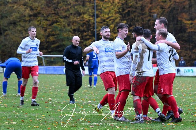 Fussball, Bezirksliga Ost, SG Berod-Wahlrod-Lautzert-Oberdreis (weiss-rot) vs. SG Neitersen-Altenkirchen (blau), 17.11.2024 |