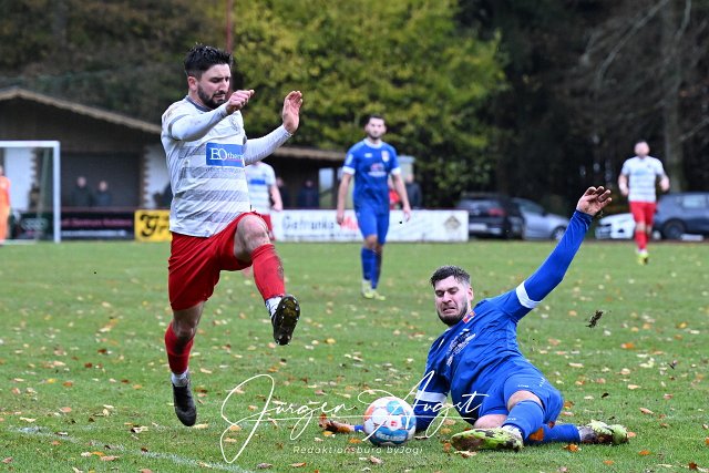 Fussball, Bezirksliga Ost, SG Berod-Wahlrod-Lautzert-Oberdreis (weiss-rot) vs. SG Neitersen-Altenkirchen (blau), 17.11.2024 |