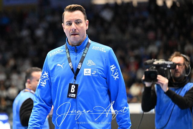 Filip Jicha (THW Kiel, Trainer) im Blickpunkt der TV Kamera GER, VfL Gummersbach vs. THW Kiel, Handball, Daikin 1. Bundesliga, 11. Spieltag, Spielzeit 2024/25, 22.11.2024 Foto: Eibner-Pressefoto/Juergen Augst |
