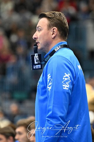 Filip Jicha (THW Kiel, Trainer) mit Trainerausweis im Mund GER, VfL Gummersbach vs. THW Kiel, Handball, Daikin 1. Bundesliga, 11. Spieltag, Spielzeit 2024/25, 22.11.2024 Foto: Eibner-Pressefoto/Juergen Augst |