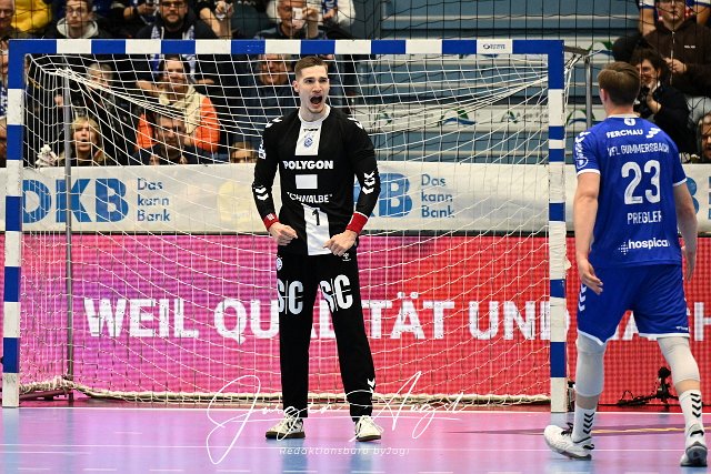 Erzielte den 7:8 Anschlusstreffer Dominik Kuzmanovic (VfL Gummersbach, #1) GER, VfL Gummersbach vs. THW Kiel, Handball, Daikin 1. Bundesliga, 11. Spieltag, Spielzeit 2024/25, 22.11.2024 Foto: Eibner-Pressefoto/Juergen Augst |
