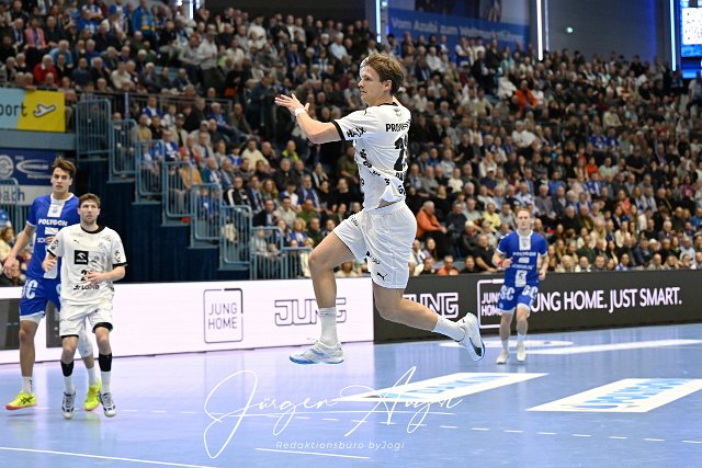 Rune Dahmke (THW Kiel, #23) hat abgehoben GER, VfL Gummersbach vs. THW Kiel, Handball, Daikin 1. Bundesliga, 11. Spieltag, Spielzeit 2024/25, 22.11.2024 Foto: Eibner-Pressefoto/Juergen Augst |