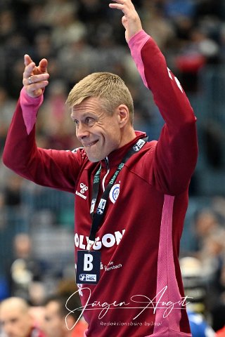 Gudjon Valur Sigurdsson (VfL Gummersbach, Trainer) gestikuliert mit verkniffenem Gesicht GER, VfL Gummersbach vs. THW Kiel, Handball, Daikin 1. Bundesliga, 11. Spieltag, Spielzeit 2024/25, 22.11.2024 Foto: Eibner-Pressefoto/Juergen Augst |