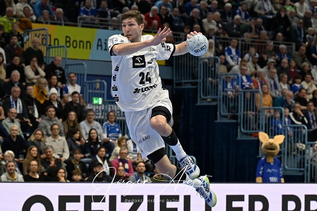 Solobild Lukas Zerbe (THW Kiel, #24) GER, VfL Gummersbach vs. THW Kiel, Handball, Daikin 1. Bundesliga, 11. Spieltag, Spielzeit 2024/25, 22.11.2024 Foto: Eibner-Pressefoto/Juergen Augst |