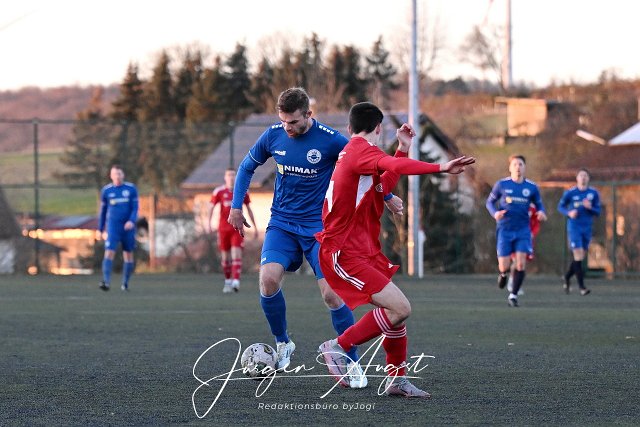 Fussball, Rheinlandliga, SG Malberg (rot) vs. VfB Wissen /blau), 30.11.2024 |