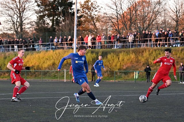Fussball, Rheinlandliga, SG Malberg (rot) vs. VfB Wissen /blau), 30.11.2024 |