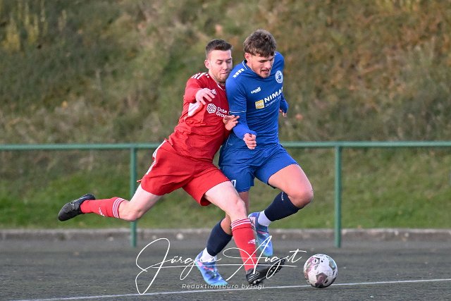 Fussball, Rheinlandliga, SG Malberg (rot) vs. VfB Wissen /blau), 30.11.2024 |