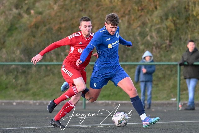 Fussball, Rheinlandliga, SG Malberg (rot) vs. VfB Wissen /blau), 30.11.2024 |