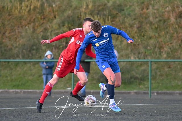 Fussball, Rheinlandliga, SG Malberg (rot) vs. VfB Wissen /blau), 30.11.2024 |