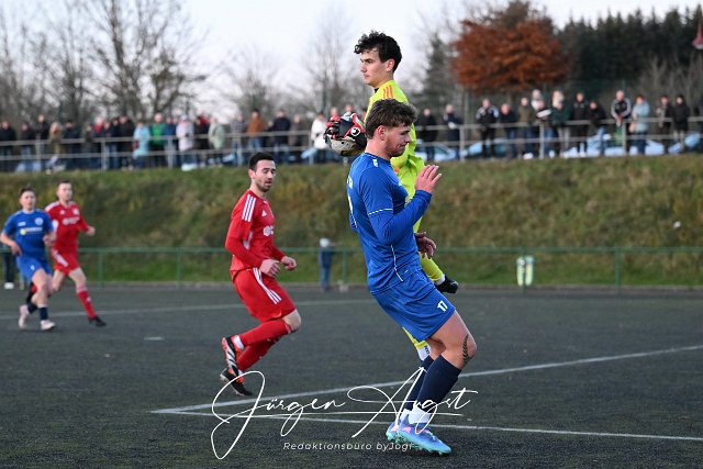 Fussball, Rheinlandliga, SG Malberg (rot) vs. VfB Wissen /blau), 30.11.2024 |
