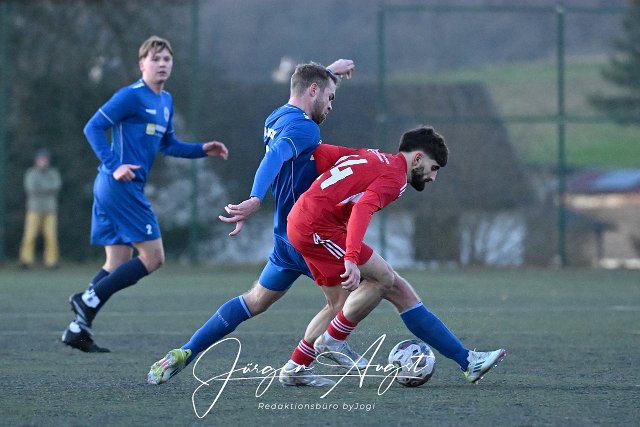 Fussball, Rheinlandliga, SG Malberg (rot) vs. VfB Wissen /blau), 30.11.2024 |