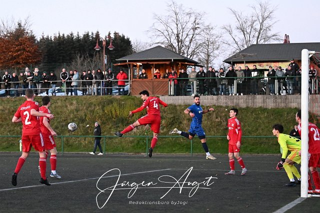 Fussball, Rheinlandliga, SG Malberg (rot) vs. VfB Wissen /blau), 30.11.2024 |