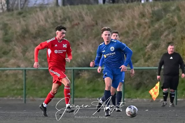 Fussball, Rheinlandliga, SG Malberg (rot) vs. VfB Wissen /blau), 30.11.2024 |