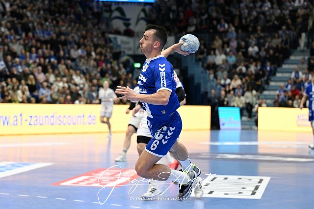 Milos Vujovic (VfL Gummersbach 6) im Angriff VfL Gummersbach vs. HC Erlangen, Handball, Daikin 1. Bundesliga, 13. Spieltag, Spielzeit 2024-2025, Schwalbe Arena Gummersbach, 08.12.2024 Foto: Eibner-Pressefoto/Juergen Augst |