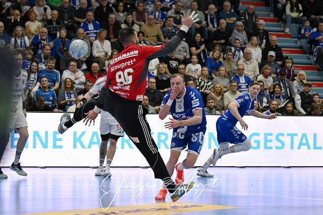 Lukas Blohme (VfL Gummersbach 8) bezwingt Khalifa Ghedbane (HC Erlangen, #96 ) VfL Gummersbach vs. HC Erlangen, Handball, Daikin 1. Bundesliga, 13. Spieltag, Spielzeit 2024-2025, Schwalbe Arena Gummersbach, 08.12.2024 Foto: Eibner-Pressefoto/Juergen Augst |