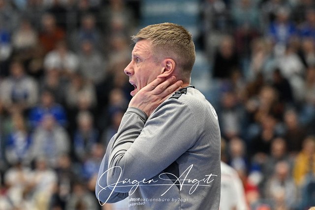 Gudjon Valur Sigurdsson (VfL Gummersbach, Trainer) verzweifelt VfL Gummersbach vs. HC Erlangen, Handball, Daikin 1. Bundesliga, 13. Spieltag, Spielzeit 2024-2025, Schwalbe Arena Gummersbach, 08.12.2024 Foto: Eibner-Pressefoto/Juergen Augst |