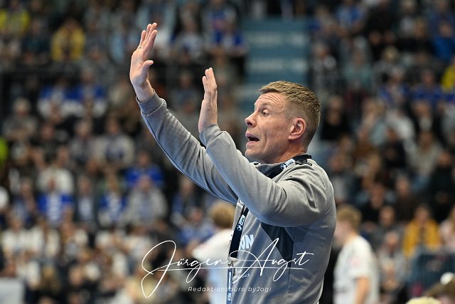 Gudjon Valur Sigurdsson (VfL Gummersbach, Trainer) gestikuliert VfL Gummersbach vs. HC Erlangen, Handball, Daikin 1. Bundesliga, 13. Spieltag, Spielzeit 2024-2025, Schwalbe Arena Gummersbach, 08.12.2024 Foto: Eibner-Pressefoto/Juergen Augst |