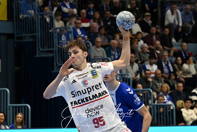 Tim Goemmel (HC Erlangen, #95) beim 7 Meter VfL Gummersbach vs. HC Erlangen, Handball, Daikin 1. Bundesliga, 13. Spieltag, Spielzeit 2024-2025, Schwalbe Arena Gummersbach, 08.12.2024 Foto: Eibner-Pressefoto/Juergen Augst |