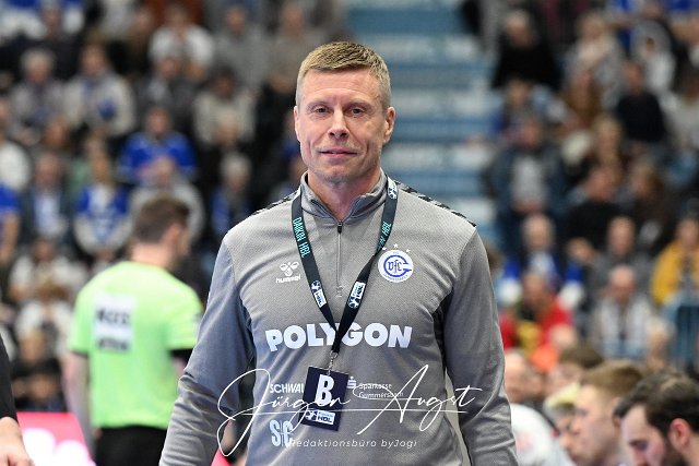 Gudjon Valur Sigurdsson (VfL Gummersbach Trainer) laechet zufrieden VfL Gummersbach vs. HC Erlangen, Handball, Daikin 1. Bundesliga, 13. Spieltag, Spielzeit 2024-2025, Schwalbe Arena Gummersbach, 08.12.2024 Foto: Eibner-Pressefoto/Juergen Augst |