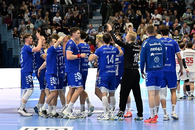 Der VfL Gummersbach schlaegt den HC Erlangen in der heimischen Schwalbe Arena 28:24 VfL Gummersbach vs. HC Erlangen, Handball, Daikin 1. Bundesliga, 13. Spieltag, Spielzeit 2024-2025, Schwalbe Arena Gummersbach, 08.12.2024 Foto: Eibner-Pressefoto/Juergen Augst |