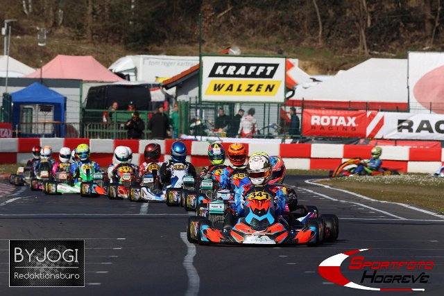Start Rennen Finale Klasse Senior mit #341 Luca Schlegl (AUT), Tony, Klasse Senior, Team: Kraft Motorsport (GER) in Front GER, Motorsport, Kart, Rotax MAX Challenge Germany 2025, Kerpen, 16.03.2025 Foto: Eibner-Pressefoto/Juergen Augst |