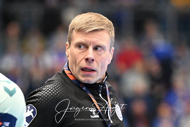 Gudjon Valur Sigurdsson (VfL Gummersbach, Trainer) ist sauer VfL Gummersbach vs. SG Flensburg-Handewitt, Handball, EHF Pokal, Hauptrunde, Spielzeit 2024-2025, Schwalbe Arena Gummersbach, 11.02.2025 Foto: Eibner-Pressefoto/Juergen Augst |