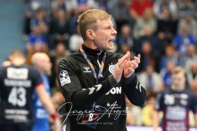 Gudjon Valur Sigurdsson (VfL Gummersbach, Trainer) feuert seine Mannschaft an VfL Gummersbach vs. SG Flensburg-Handewitt, Handball, EHF Pokal, Hauptrunde, Spielzeit 2024-2025, Schwalbe Arena Gummersbach, 11.02.2025 Foto: Eibner-Pressefoto/Juergen Augst |