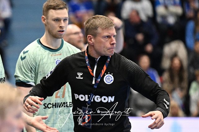 Sauer Gudjon Valur Sigurdsson (VfL Gummersbach Trainer) VfL Gummersbach vs. SG Flensburg-Handewitt, Handball, EHF Pokal, Hauptrunde, Spielzeit 2024-2025, Schwalbe Arena Gummersbach, 11.02.2025 Foto: Eibner-Pressefoto/Juergen Augst |