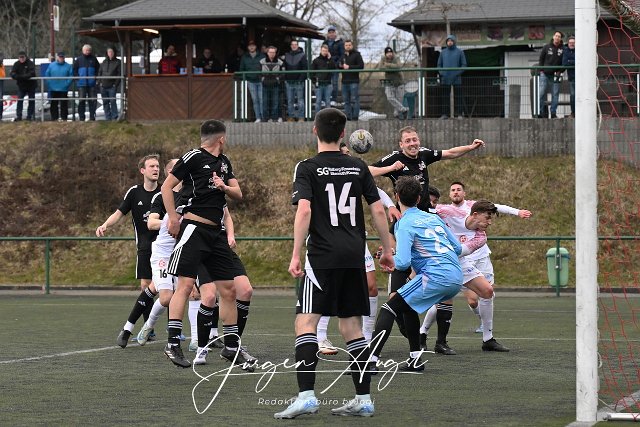 Fussball, Rheinlandliga, SG Malberg (schwarz) vs SV Rot-Weiss Wittlich (weiß), 22.02.2025 |