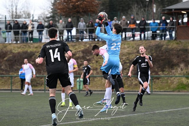 Fussball, Rheinlandliga, SG Malberg (schwarz) vs SV Rot-Weiss Wittlich (weiß), 22.02.2025 |