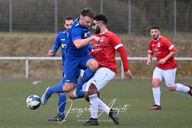 Fussball, Testspiel, SG Neitersen-Altenkirchen I (rot/weiss) vs. VfB Wissen II (blau), 01.03.2025 |