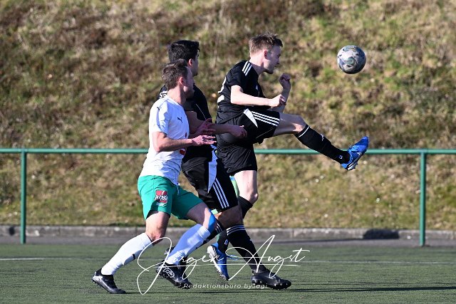 Fussball, Rheinlandliga, SG Malberg (schwarz) vs. SG 2000 Muelheim-Kaerlich (weiß/grün), 08.03.2025 |