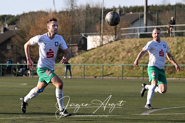 Fussball, Rheinlandliga, SG Malberg (schwarz) vs. SG 2000 Muelheim-Kaerlich (weiß/grün), 08.03.2025 |