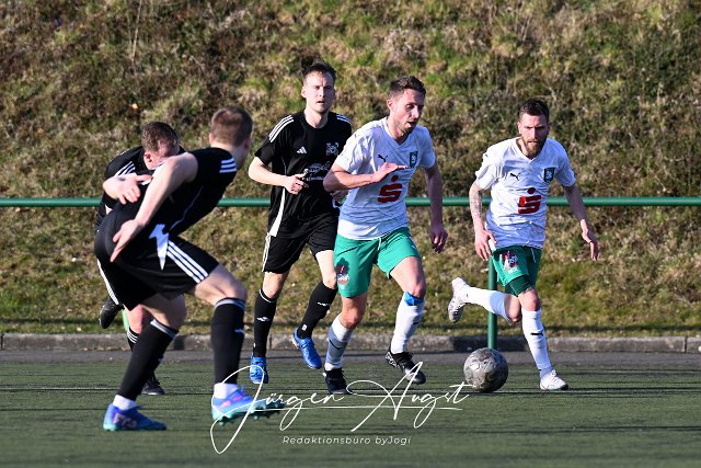 Fussball, Rheinlandliga, SG Malberg (schwarz) vs. SG 2000 Muelheim-Kaerlich (weiß/grün), 08.03.2025 |