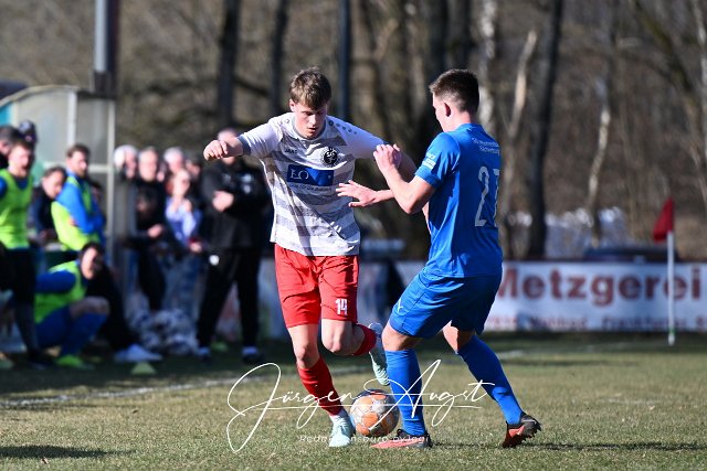 Fussball, Bezirksliga Ost, SG Berod-Wahlrod-Lautzert-Oberdreis (weiß/rot) vs. SG Mueschenbach (blau), 09.03.2025 |