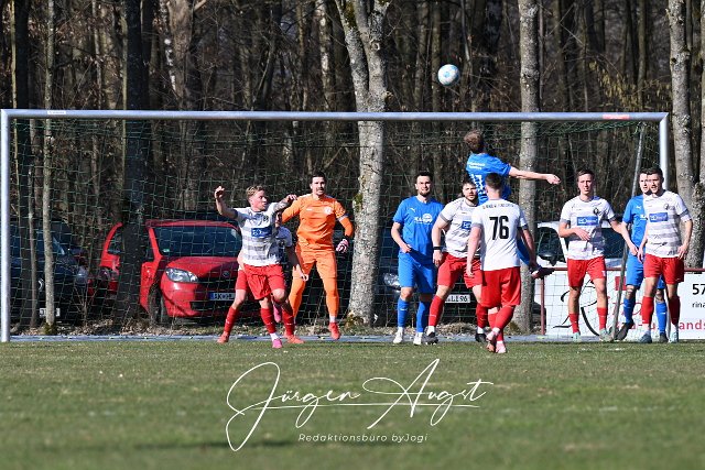 Fussball, Bezirksliga Ost, SG Berod-Wahlrod-Lautzert-Oberdreis (weiß/rot) vs. SG Mueschenbach (blau), 09.03.2025 |