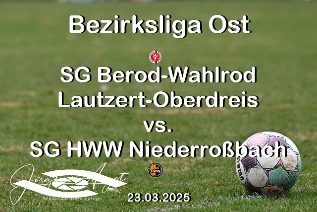 Fussball, Bezirksliga Ost, SG Berod-Wahlrod-Lautzert-Oberdreis (weiß-rot) vs. FC HWW Niederrossbach (hellblau), 23.03.2025 |
