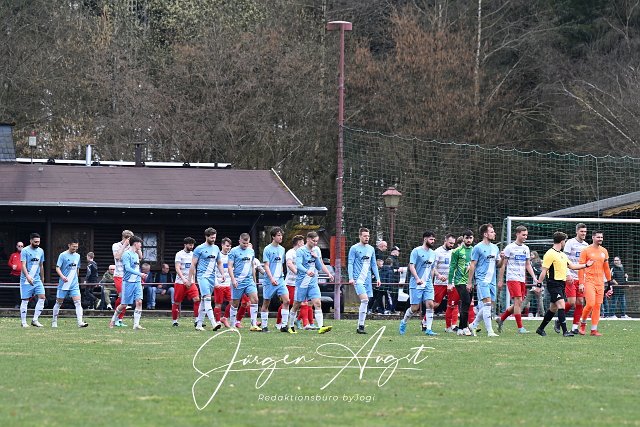 Fussball, Bezirksliga Ost, SG Berod-Wahlrod-Lautzert-Oberdreis (weiß-rot) vs. FC HWW Niederrossbach (hellblau), 23.03.2025 |