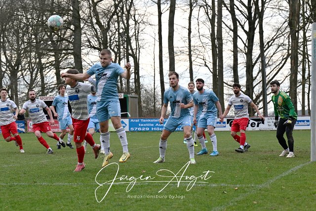 Fussball, Bezirksliga Ost, SG Berod-Wahlrod-Lautzert-Oberdreis (weiß-rot) vs. FC HWW Niederrossbach (hellblau), 23.03.2025 |